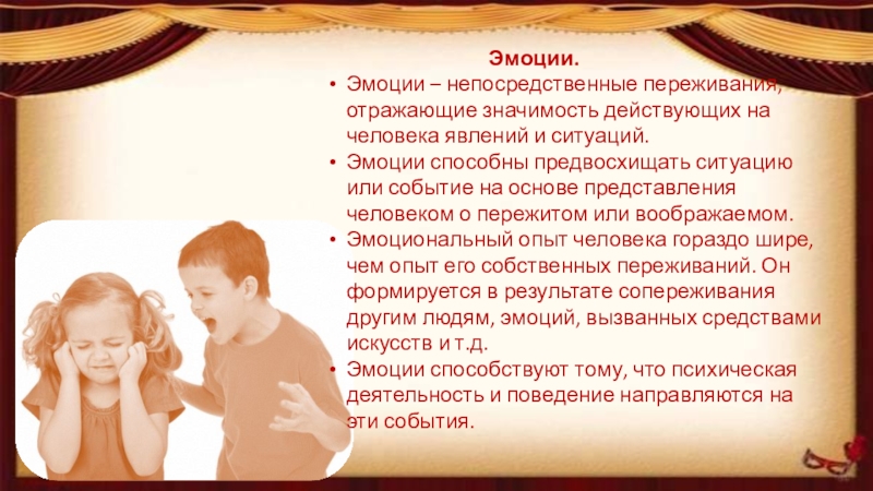 Слайд 1«Развитие эмоций, мимики и жестов при подготовке спектакля с