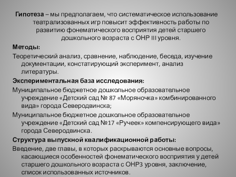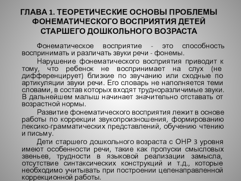 РАЗВИТИЕ ФОНЕМАТИЧЕСКОГО ВОСПРИЯТИЯ У ДЕТЕЙ СТАРШЕГО ДОШКОЛЬНОГО ВОЗРАСТА С ОНРIII УРОВНЯ ПОСРЕДСТВОМ ТЕАТРАЛИЗОВАННЫХ ИГР