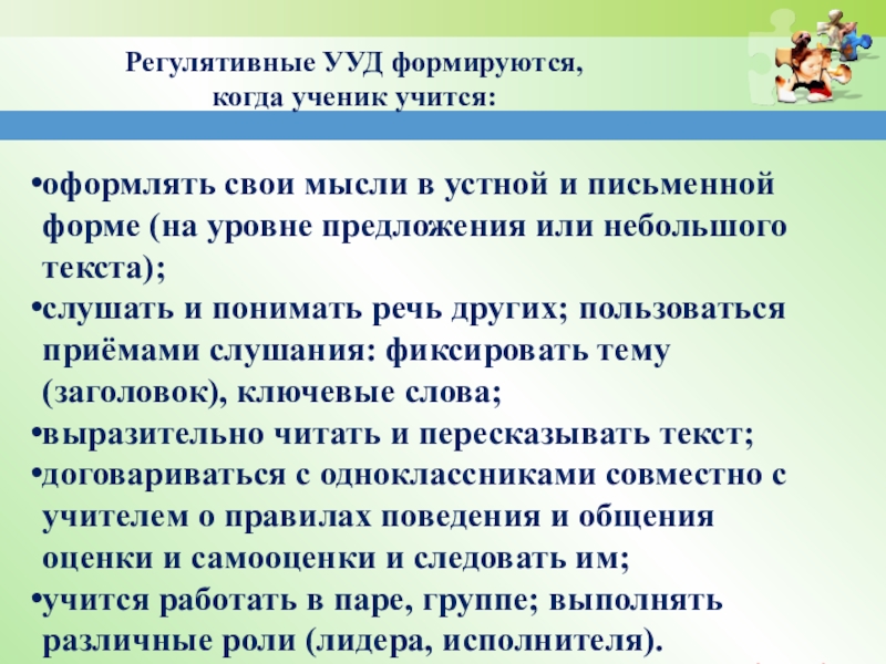 Регулятивные УУД формируются,