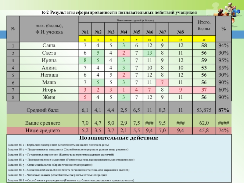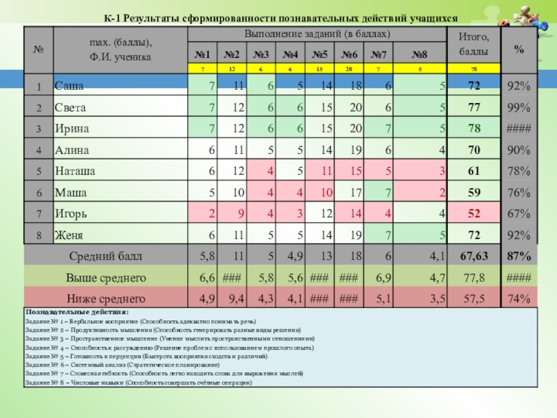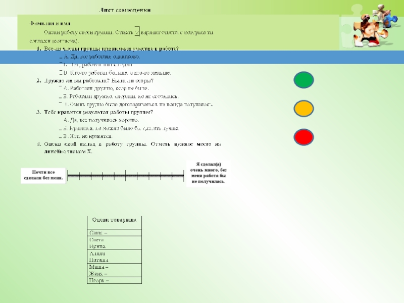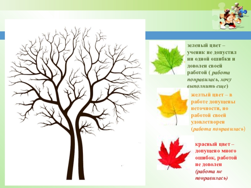 желтый цвет – в работе допущены неточности, но работой своей удовлетворен