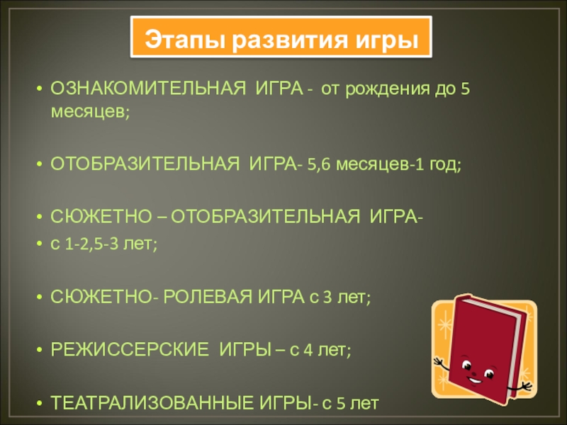 Слайд 18ВОЗРАСТНЫЕ ЭТАПЫ ИГРЫ