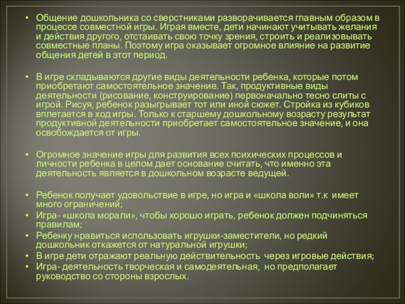 Слайд 8Общение дошкольника со сверстниками разворачивается главным образом в процессе совместной игры.