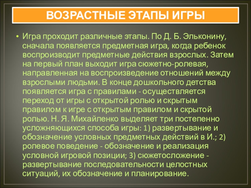 Слайд 18ВОЗРАСТНЫЕ ЭТАПЫ ИГРЫ
