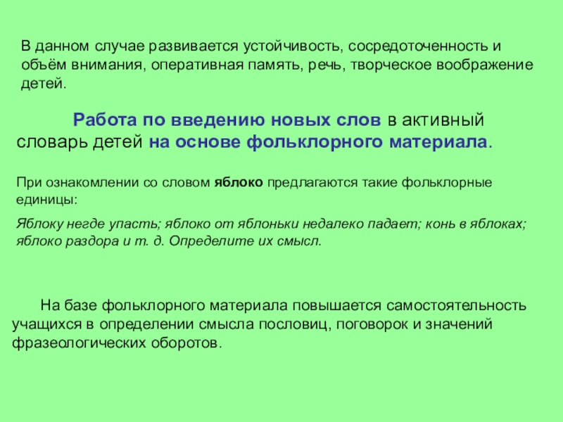 При ознакомлении со словом яблоко предлагаются такие фольклорные единицы: