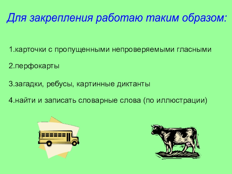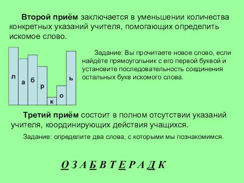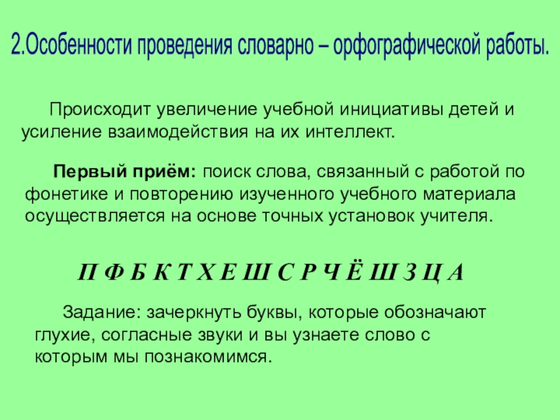 Первый приём: поиск слова, связанный с работой по фонетике и повторению изученного учебного материала осуществляется на основе точных установок учителя.