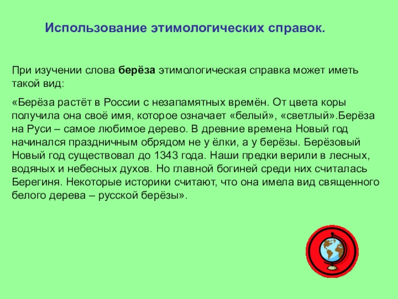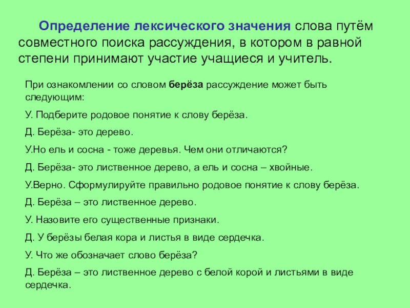 При ознакомлении со словом берёза рассуждение может быть следующим: