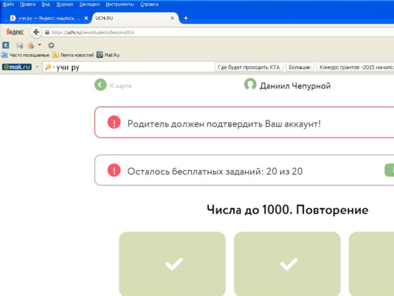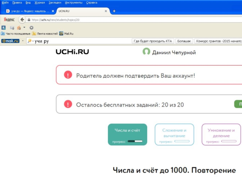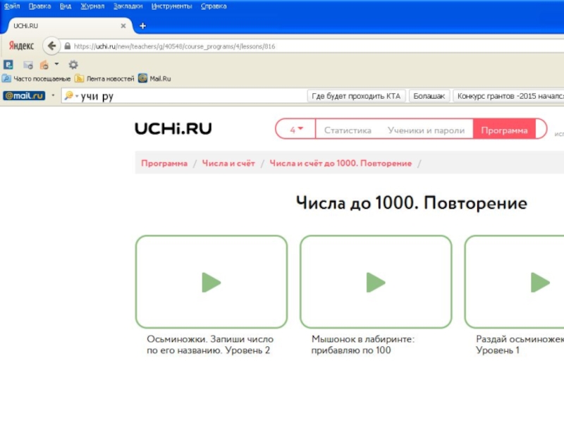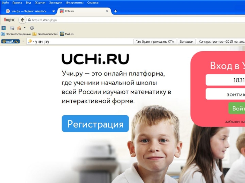 Презентация Развитие интереса младших школьников к изучению математики средствами интерактивной платформы Учи.ru Детские презентации