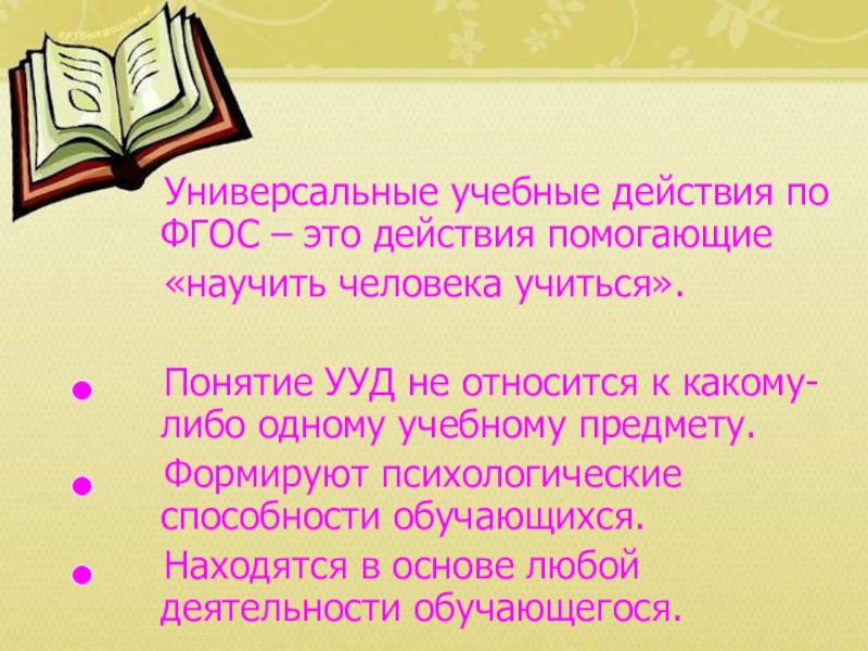 Понятие УУД не относится к какому-либо одному учебному предмету.