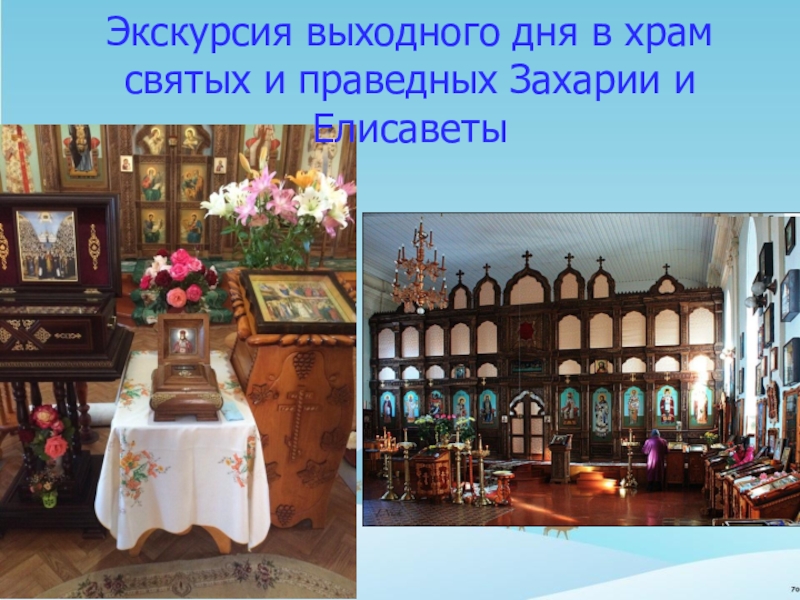 Слайд 29Экскурсия выходного дня в храм святых и праведных Захарии и Елисаветы