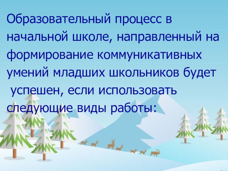 Образовательный процесс в начальной школе, направленный на формирование коммуникативных умений младших школьников будет успешен, если использовать следующие