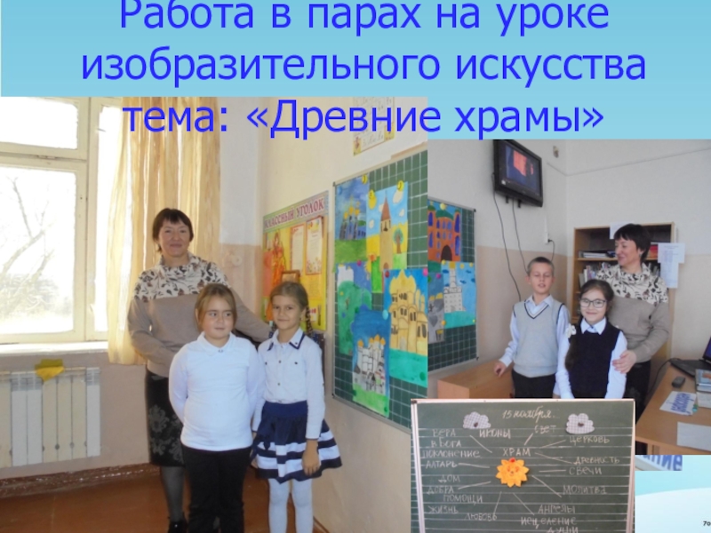 Слайд 27Работа в парах на уроке изобразительного искусства тема: «Древние храмы»