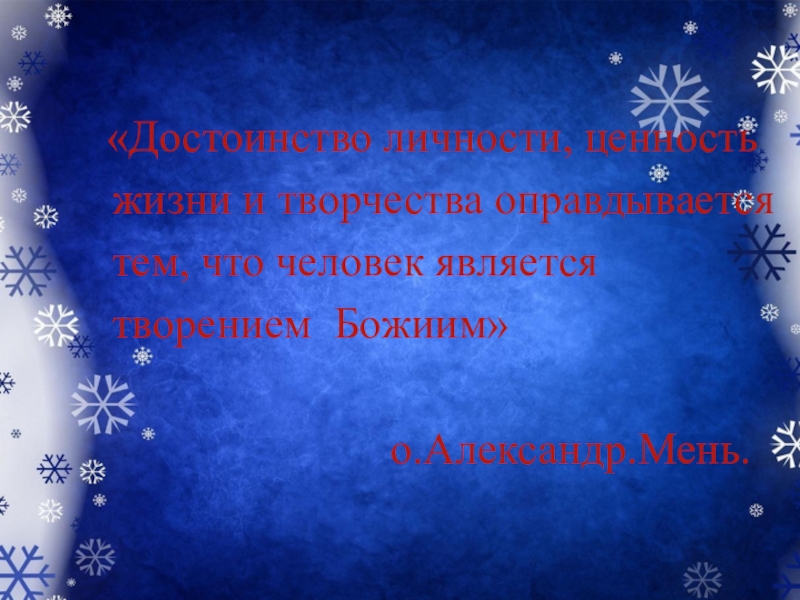 «Достоинство личности, ценность жизни и творчества оправдывается тем, что человек является творением Божиим»