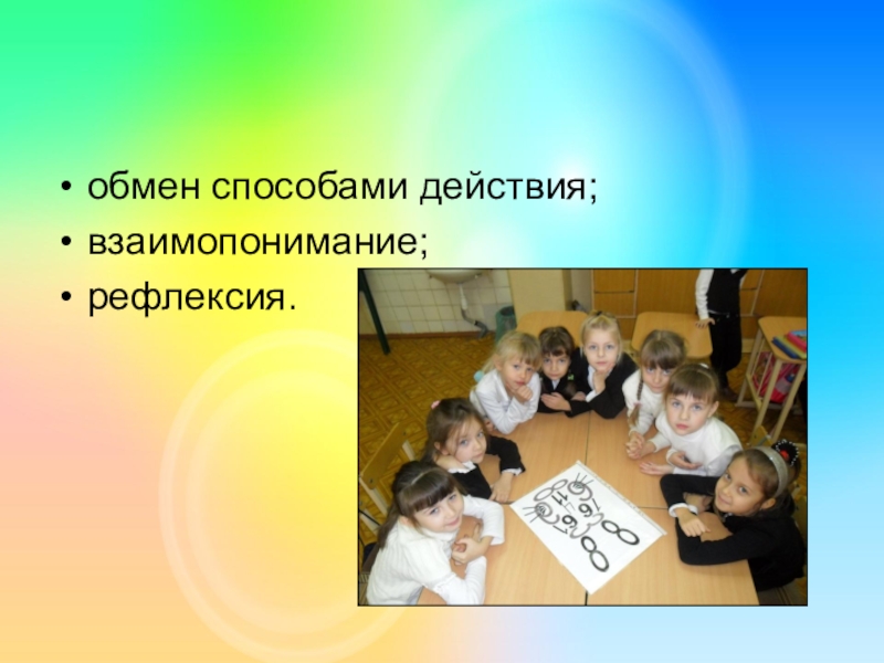 Групповые технологии предполагаютвзаимное обогащение учащихся в группе;организацию совместной деятельности;распределение начальных действий, операций, идей;развитие коммуникативных компетенций;