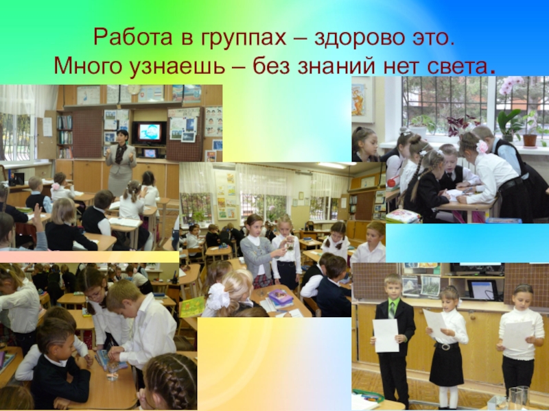 Слайд 18Работа в группах – здорово это. Много узнаешь – без знаний нет