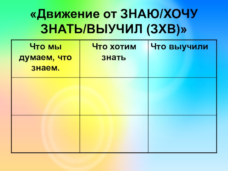 Слайд 10«Движение от ЗНАЮ/ХОЧУ ЗНАТЬ/ВЫУЧИЛ (ЗХВ)»
