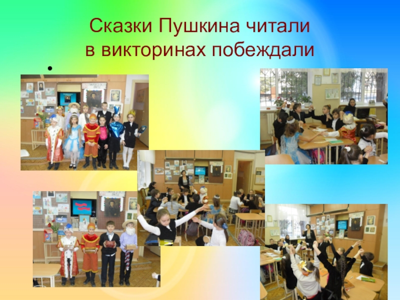 Слайд 16Сказки Пушкина читали в викторинах побеждали
