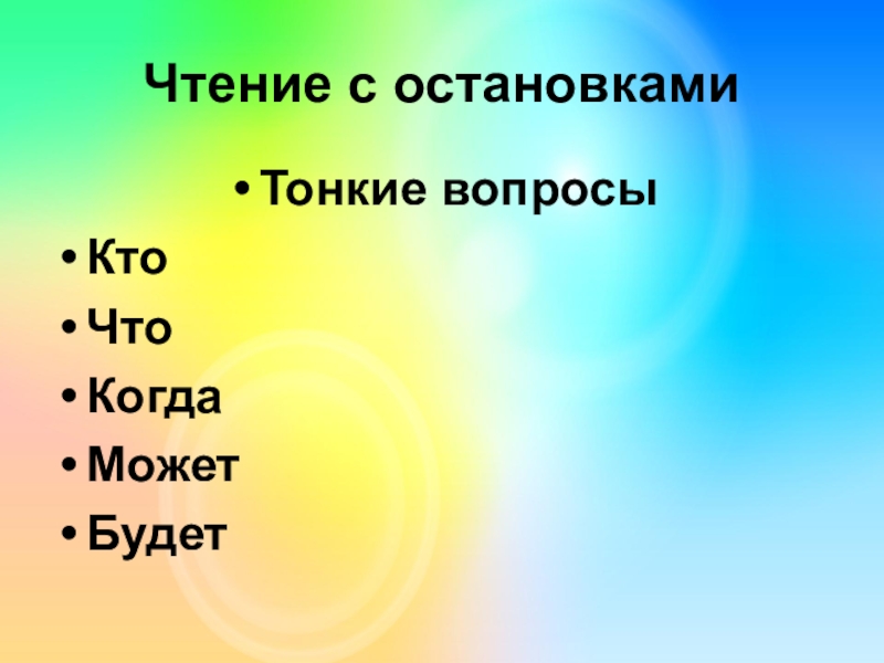 Чтение с остановкамиТонкие вопросыКто ЧтоКогдаМожетБудет