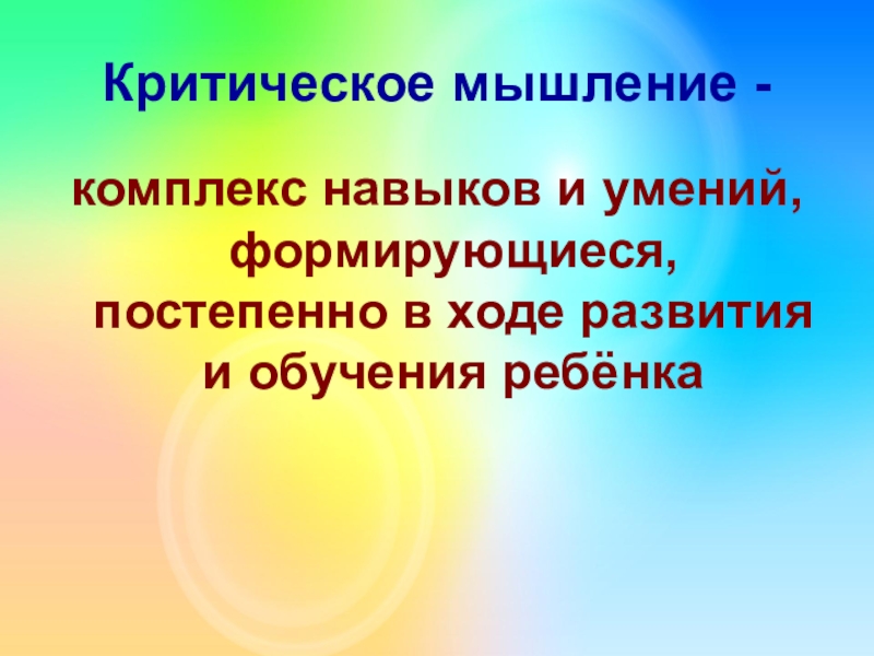 Критическое мышление -комплекс навыков и умений, формирующиеся, постепенно в ходе развития и обучения ребёнка