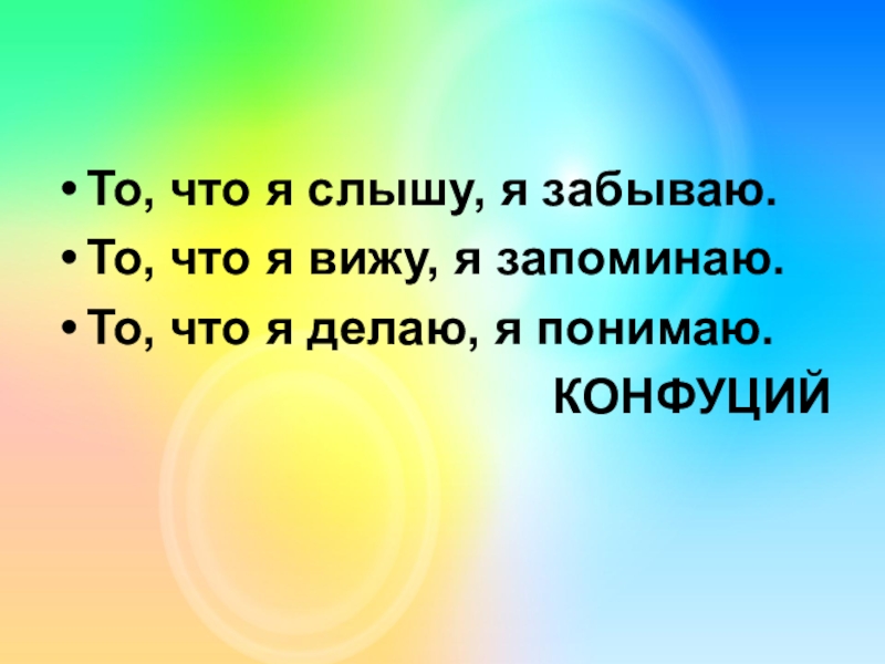 То, что я слышу, я забываю.То, что я вижу, я запоминаю.То, что я делаю, я понимаю.КОНФУЦИЙ