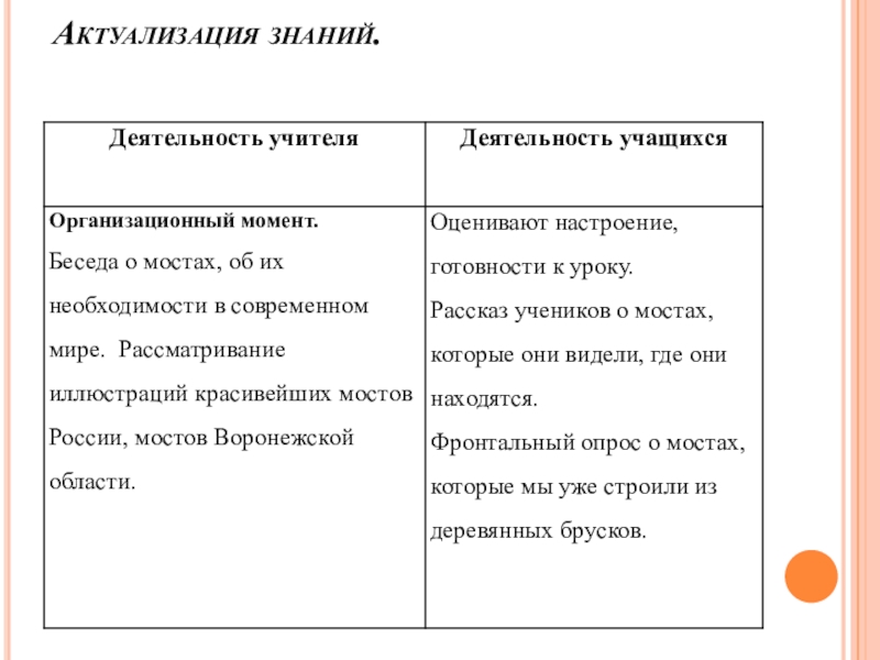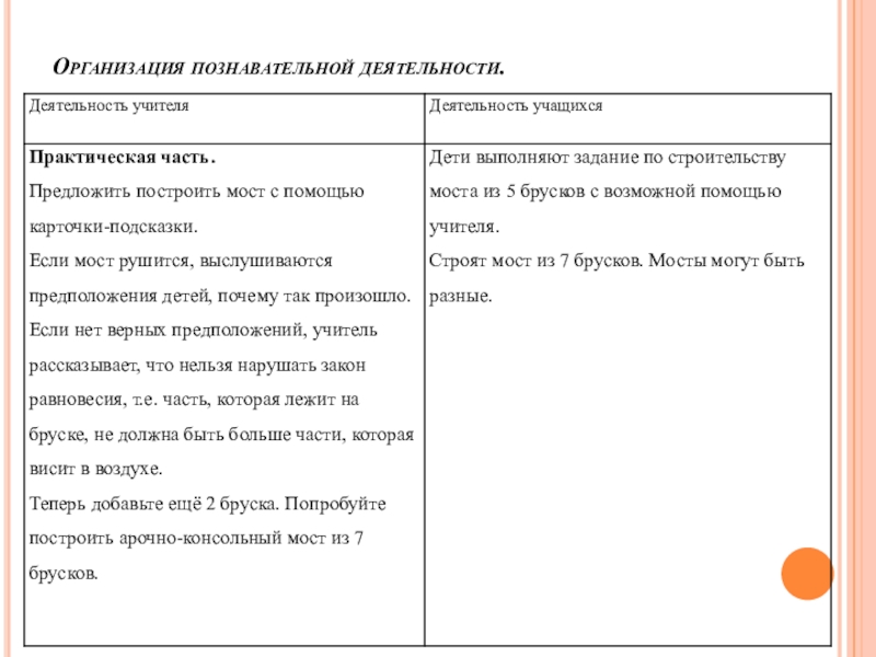 Оборудование: на каждую пару учеников по 7 деревянных блоков, иллюстрации с изображение различных мостов, карточки- подсказки.