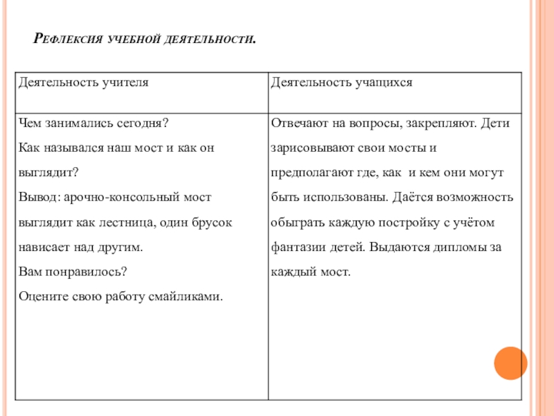 Планируемые результаты: учащиеся научатся различат мосты по их видам, назначению. Научатся строить арочно-консольный мост.