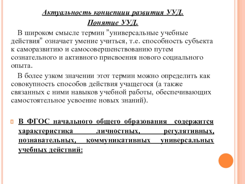Слайд 8Актуальность концепции развития УУД.
