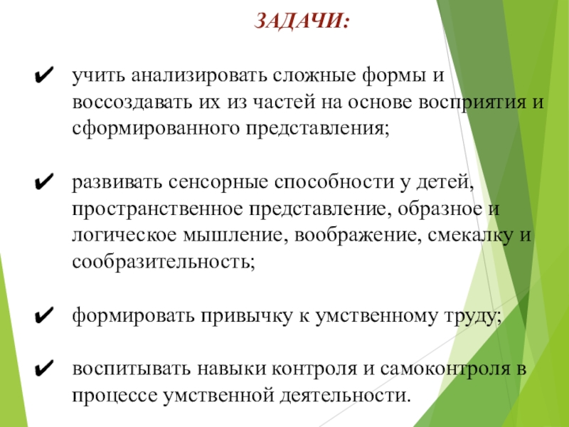 учить анализировать сложные формы и воссоздавать их из частей на