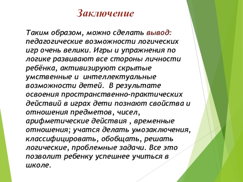 Слайд 30Таким образом, можно сделать вывод: педагогические возможности логических игр очень велики.