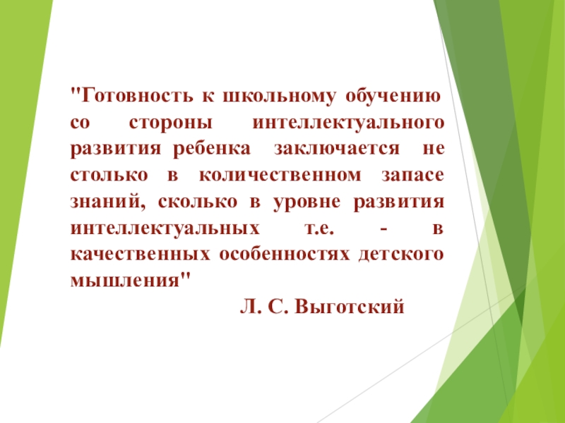 Слайд 2"Готовность к школьному обучению со стороны интеллектуального развития ребенка заключается не