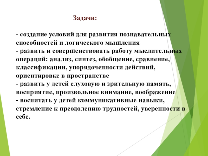 - создание условий для развития познавательных способностей и логического мышления