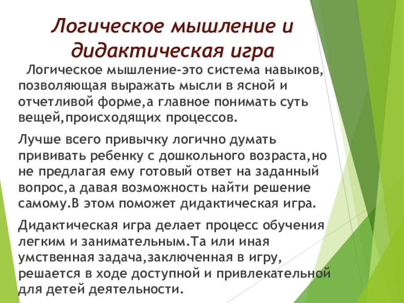 Слайд 11Логическое мышление и дидактическая игра