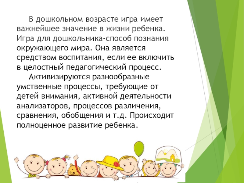 Слайд 9 В дошкольном возрасте игра имеет важнейшее значение в