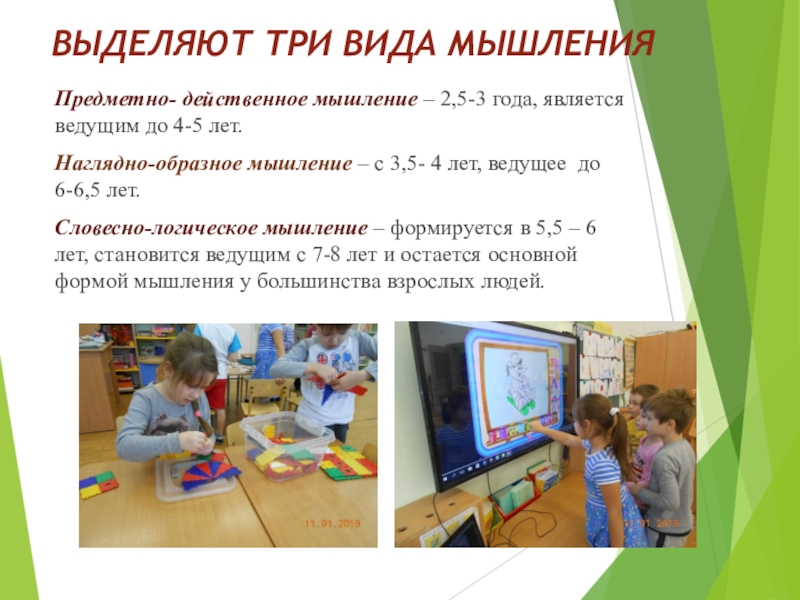 Предметно- действенное мышление – 2,5-3 года, является ведущим