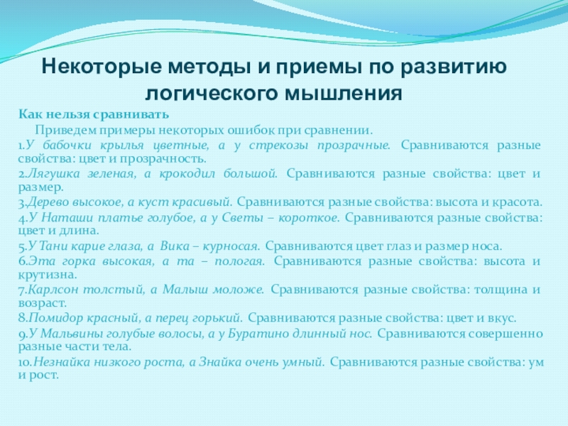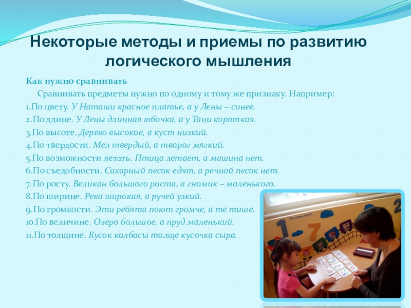 Слайд 12Некоторые методы и приемы по развитию логического мышления