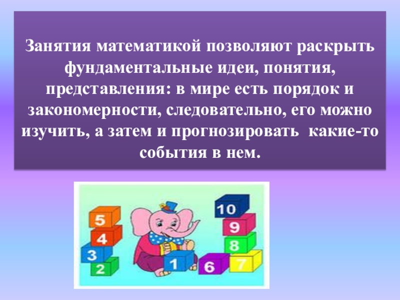 Занятия математикой позволяют раскрыть фундаментальные идеи, понятия, представления: в мире есть
