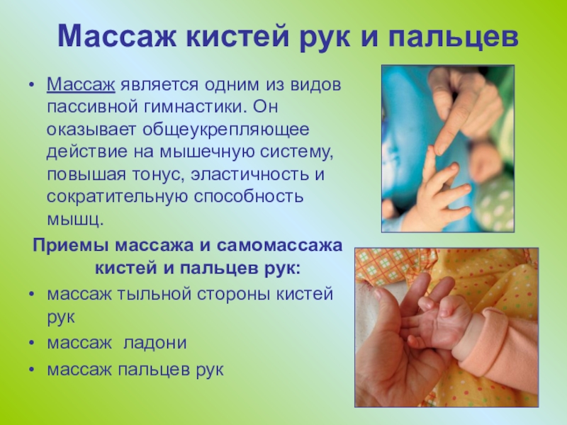 Приемы массажа и самомассажа кистей и пальцев рук: