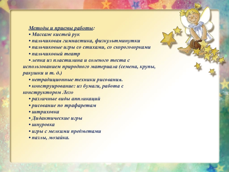 7. Развивать мелкую моторику пальцев рук у детей дошкольного возраста через использование разнообразных форм, методов и приемов.
