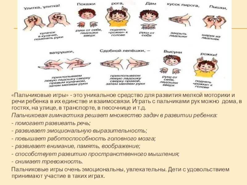 Слайд 18 «Пальчиковые игры» - это уникальное средство для