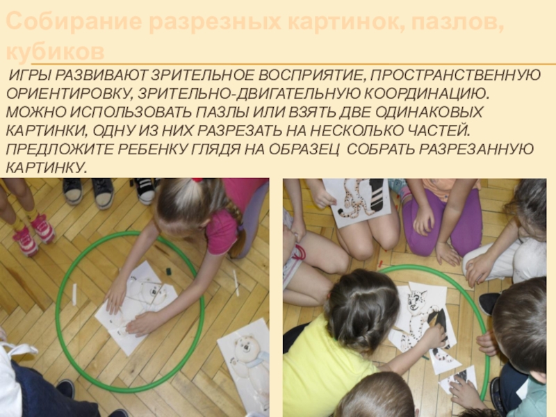 Слайд 6Собирание разрезных картинок, пазлов, кубиков