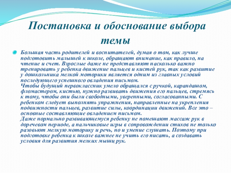 Слайд 3 Постановка и обоснование выбора темы
