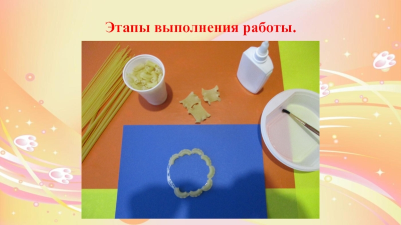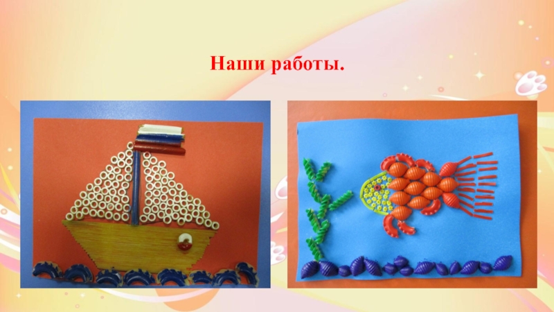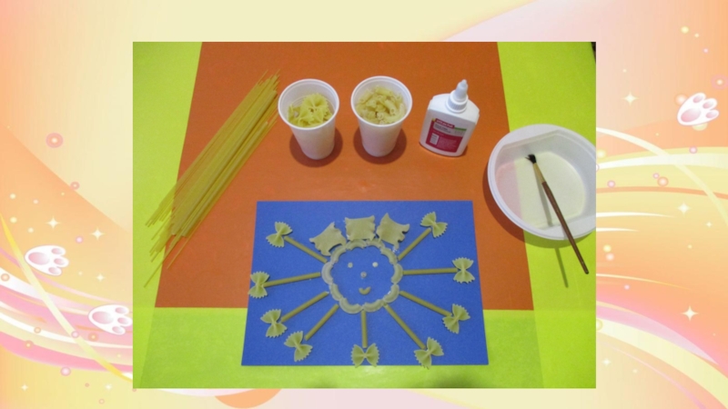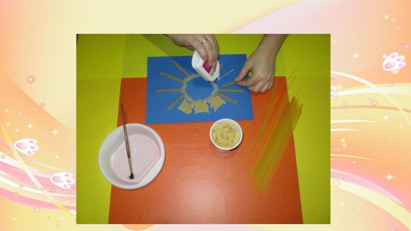 - обучать последовательности действий при изготовлении аппликации из макарон;