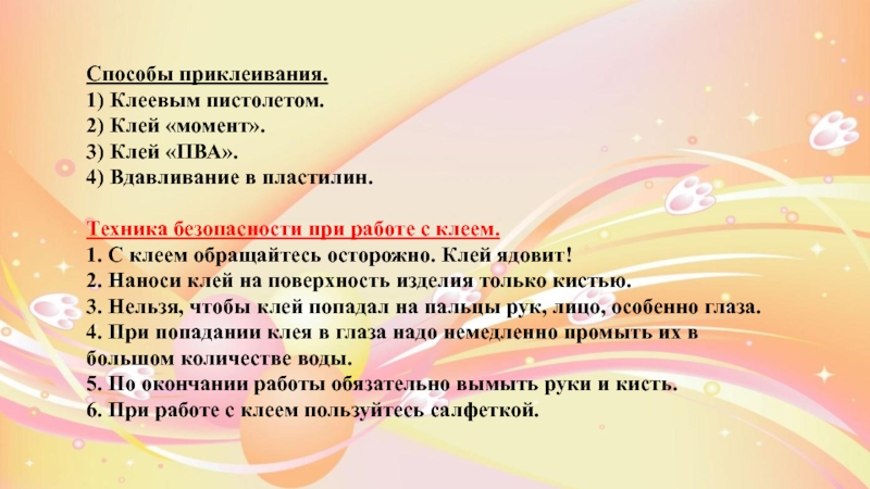 3. Нельзя, чтобы клей попадал на пальцы рук, лицо, особенно глаза.