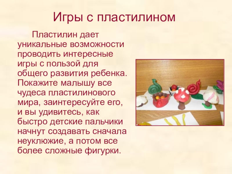 Пластилин дает уникальные возможности проводить интересные игры с пользой