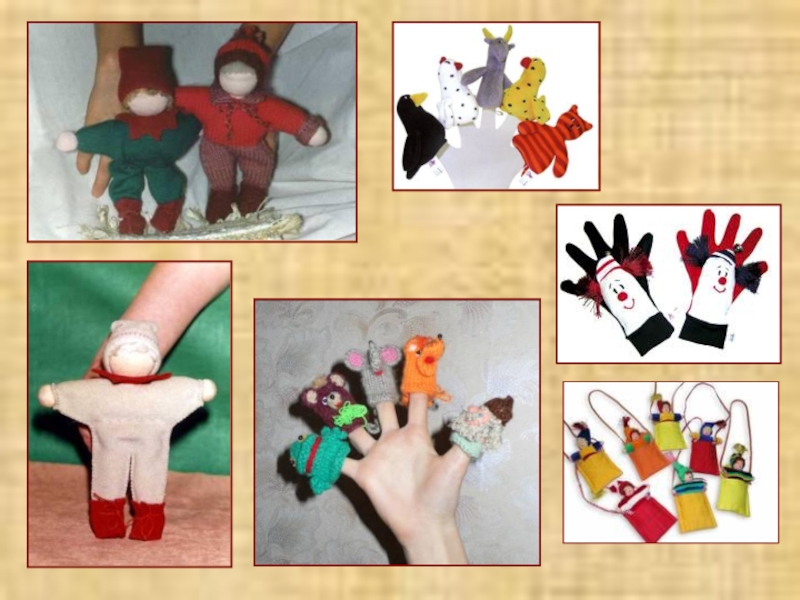 их. Куклы бывают разные: петрушечные куклы, вязаные пальчиковые куклы, мягкие подвижные «куклы-рукавички», комбинированные куклы, «я–куклы», куклы-марионетки.