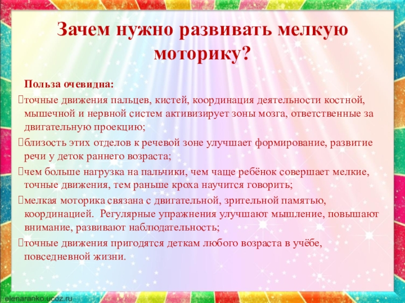 Слайд 5Зачем нужно развивать мелкую моторику?