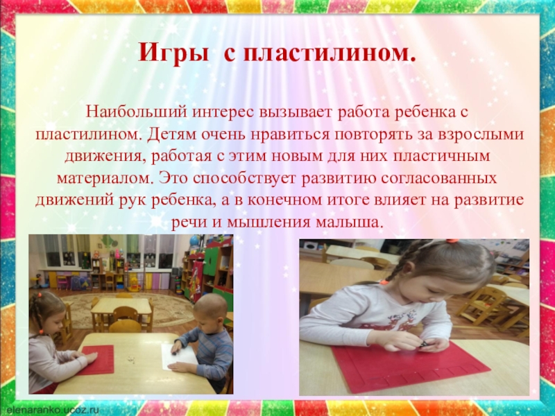 Наибольший интерес вызывает работа ребенка с пластилином. Детям очень