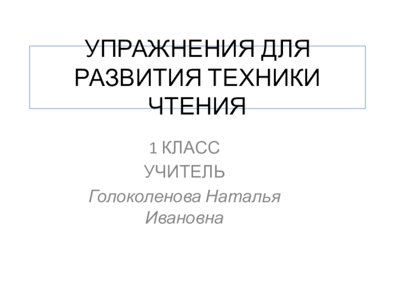 УПРАЖНЕНИЯ ДЛЯ РАЗВИТИЯ ТЕХНИКИ ЧТЕНИЯ1 КЛАССУЧИТЕЛЬГолоколенова Наталья Ивановна