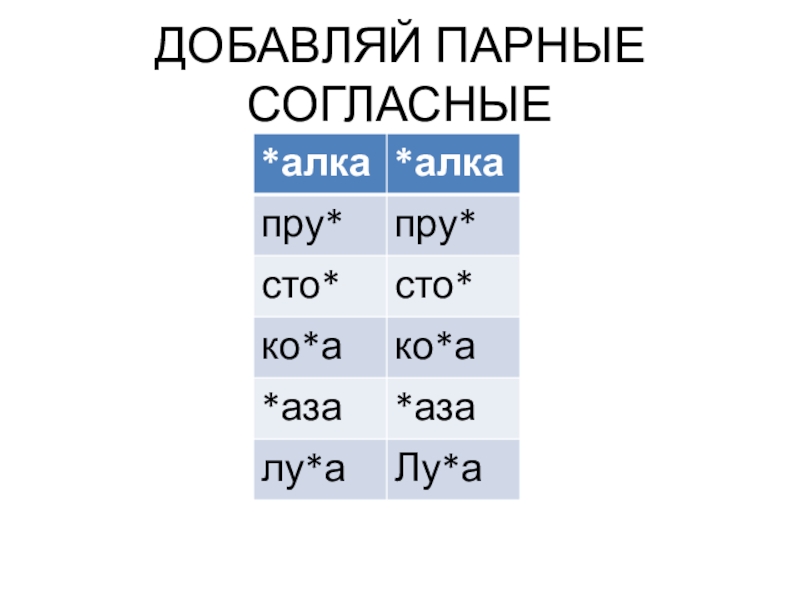 Слайд 8ДОБАВЛЯЙ ПАРНЫЕ СОГЛАСНЫЕ