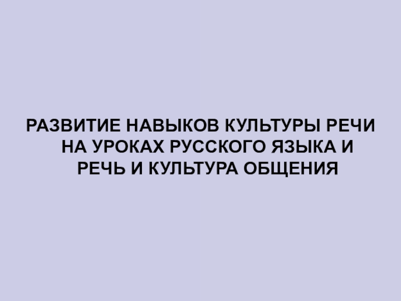РАЗВИТИЕ НАВЫКОВ КУЛЬТУРЫ РЕЧИ НА УРОКАХ РУССКОГО ЯЗЫКА И РЕЧЬ И