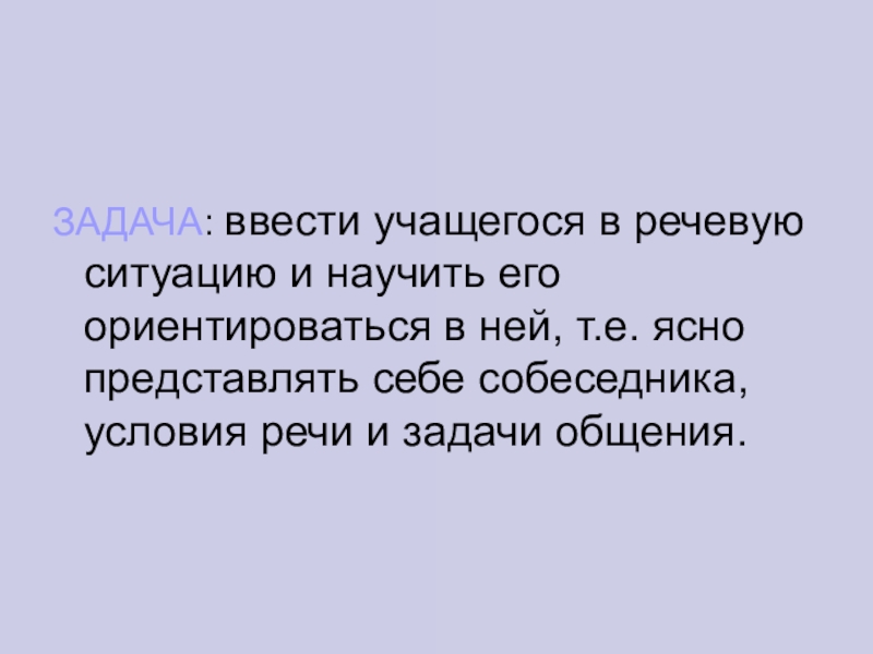 ЗАДАЧА: ввести учащегося в речевую ситуацию и научить его ориентироваться в